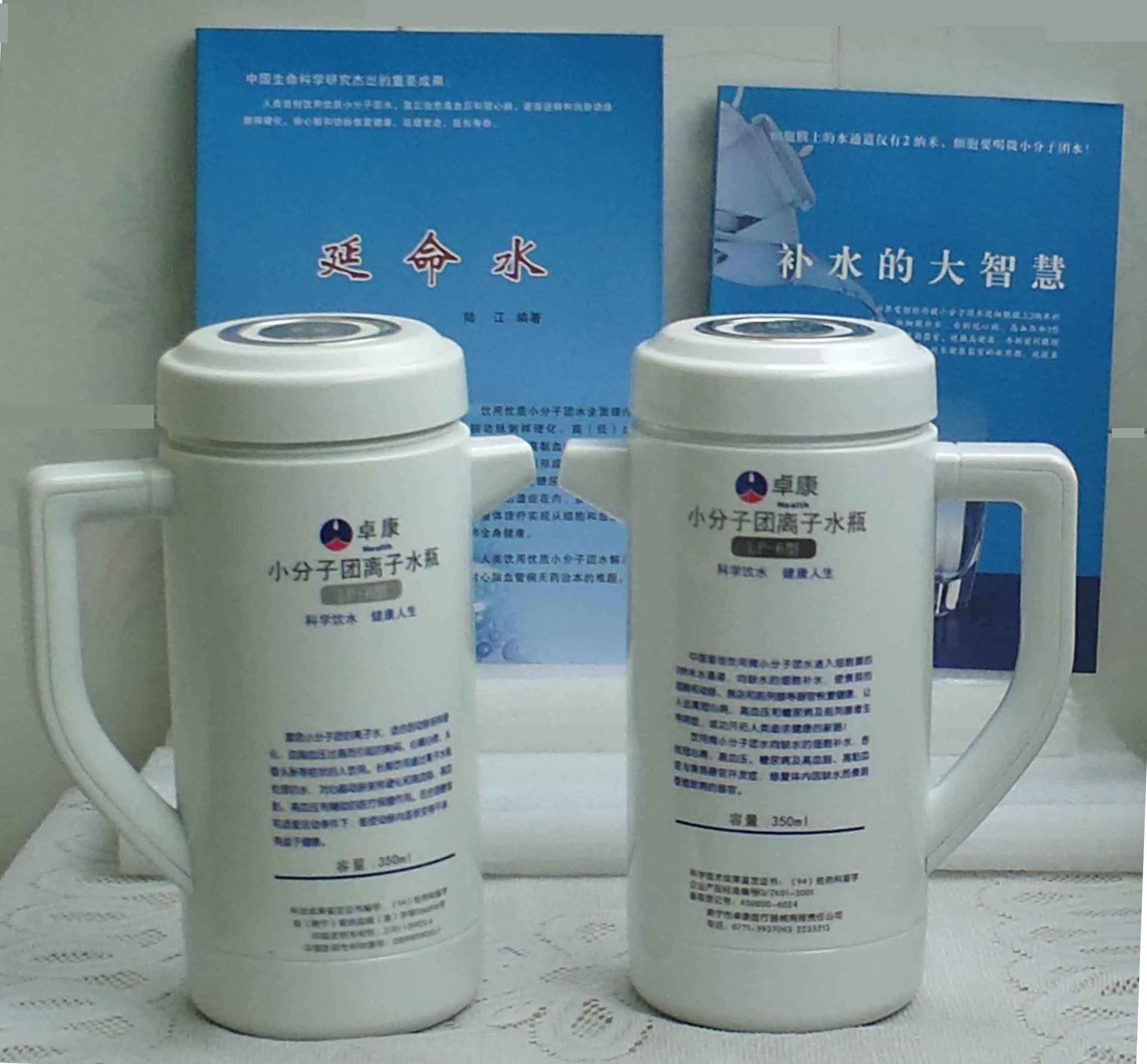 本品大量用戶的使用效果表明,能治愈冠心病、腦動(dòng)脈硬化、原發(fā)性高(低)血壓、高血脂、高粘血癥、高血尿酸癥(痛風(fēng))和2型糖尿病、衰弱器官并發(fā)癥(前列腺增生、腎衰與尿毒癥)及中風(fēng)后遺癥等療效好。產(chǎn)品配信譽(yù)卡。使用壽命30年,不換芯,易清洗。團(tuán)購優(yōu)惠。從郵局匯款,匯費(fèi)1%,地址按本頁下方地址、聯(lián)系人寫。從銀行匯款,請點(diǎn)擊[聯(lián)系匯款]欄,從工商銀行匯款,建設(shè)銀行、農(nóng)業(yè)銀行匯款,均免收匯費(fèi),匯款后20--30分鐘內(nèi)發(fā)短信,可用微信轉(zhuǎn)帳,均免匯費(fèi),微信號(hào)即手機(jī)號(hào)13768308380。匯款后,告知你的姓名和地址,我公司聯(lián)系人手機(jī)號(hào)是:13768308380卓康牌離子水瓶為我公司獨(dú)家生產(chǎn),郵購產(chǎn)品配《補(bǔ)水的大智慧》彩印書一本,另配四季出版社出版的新書《補(bǔ)水的大智慧》一本,并配光盤一張(含央視主持人釆訪陸江的對話視頻)。目前市場和"淘寶網(wǎng)"上有人兜售假冒的偽品,望讀者審察辯別真?zhèn)危旒僬哓飧`假冒本公司的各種認(rèn)證、獲獎(jiǎng)獎(jiǎng)項(xiàng)、專利號(hào)和外包裝盒上的中英文字,包括科技成果的鑒定意見等,請讀者注意防偽。如何識(shí)別假貨?已經(jīng)買了假貨怎么辦?(請點(diǎn)擊[打假掠影][打假掠影])。